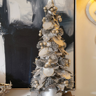 But back to the Christmas tree decorating... So, The manager from Niche, Alison Alvarez Russ, came to my aid and helped me incorporate both glittery stems and beautiful ribbons to our tree. Last year, I was at a complete loss on how to properly install both and I allowed my frustration to get the better part of me and just said to hell with it. This year, I was determined to NOT do that. It was imperative that I DO BETTER, or learn what I didn't know.