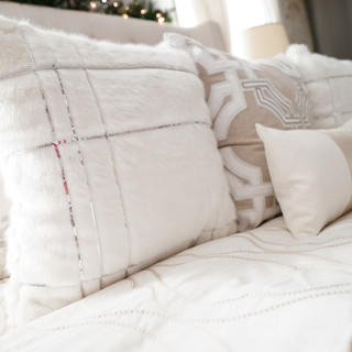 One of the things I love to do oftentimes when styling my home, is to "shop my house" which essentially means working with existing things I already have or own. It's the perfect solution to cutting down on cost and saving money, especially during the hustle and bustle of the holiday season. Because I shop quite often for home decor in general, I tend to change decorative pieces around a lot within my home...storing the overflow of accents away for another time or later season. This was the case for this year's holiday change up to my toss pillows.